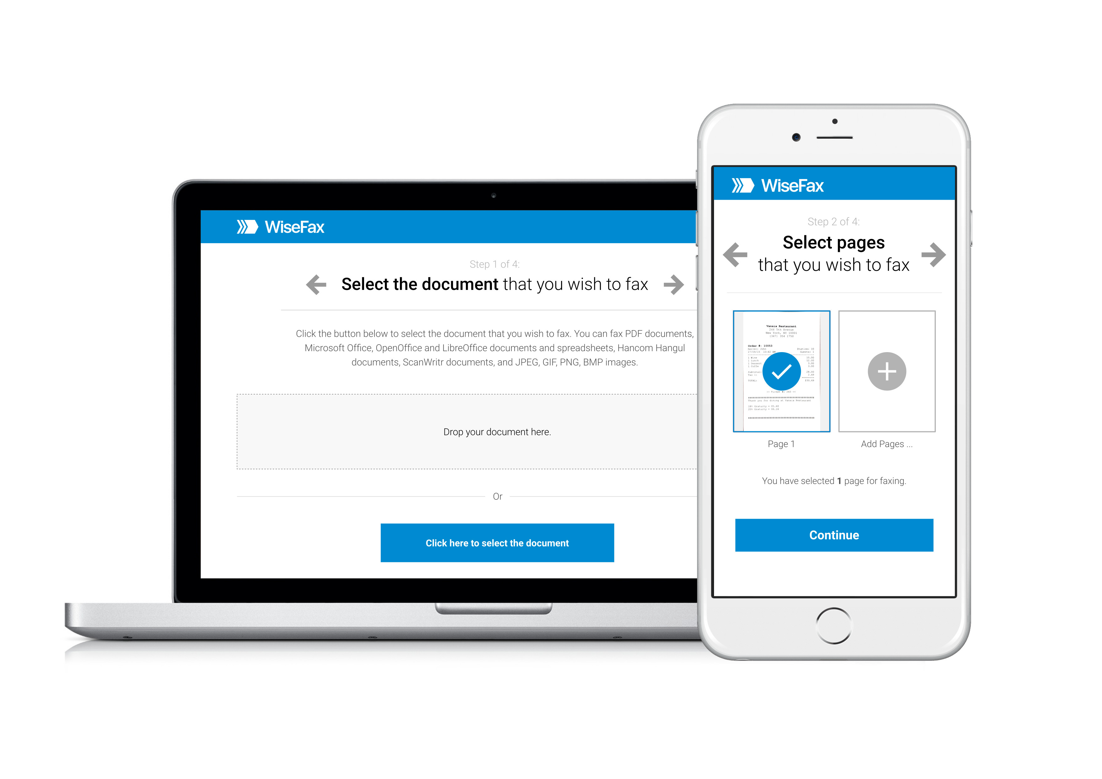 If you are connected to the internet sending an electronic fax has become a simple task. Just use our online efax solution called WiseFax and send a fax directly from your Mac, Windows or Linux computer, iPhone or iPad, Android phone or tablet. The WiseFax web page looks and feels the same on all devices and modern browsers due to its responsive design. You can do it without installing an app and without any subscription in a few simple steps anywhere in the world – you pay only the cost of faxing itself.
